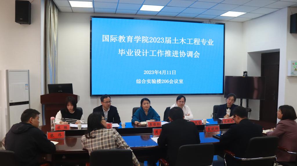 为确保2023届土木工程专业(中外合作办学)本科毕业设计的顺利完成, 4月11日下午,在综合实验楼206会议室,betway西汉姆联官方网站与国际教育公司联合召开2023届土木工程专业(中外合作办学)毕业设计推进会。国际教育公司经理李保红、副经理姚光金、副书记付春锋、教学秘书朱妍妍、2023届土木工程专业(中外合作办学)班主任陈璐;betway西汉姆联官方网站经理周葆春、副经理袁晓辉、土木系主任高春华、教学秘书李卉、毕业设计指导教师代表张伟参会。