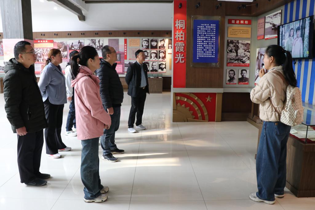 在桐柏革命纪念馆,全体党员依次参观了“淮源星火”“红旗漫卷”“抗日烽火”“中原伟业”“桐柏霞光”5大主题展厅。大家认真聆听讲解员的详细讲解,在一张张珍贵的历史照片、一件件陈旧的实物展品、一封封泛黄的烈士家书前驻足端详,在一个个感人至深的历史故事和场景中深情追思,用心学习桐柏地区波澜壮阔的革命历程,深刻感悟信仰的力量。沿着革命先辈英勇奋斗的足迹,党员们探访了中共中央中原局、中原军区和中原行署旧址和李先念、王震、王树声等革命先驱的旧居。