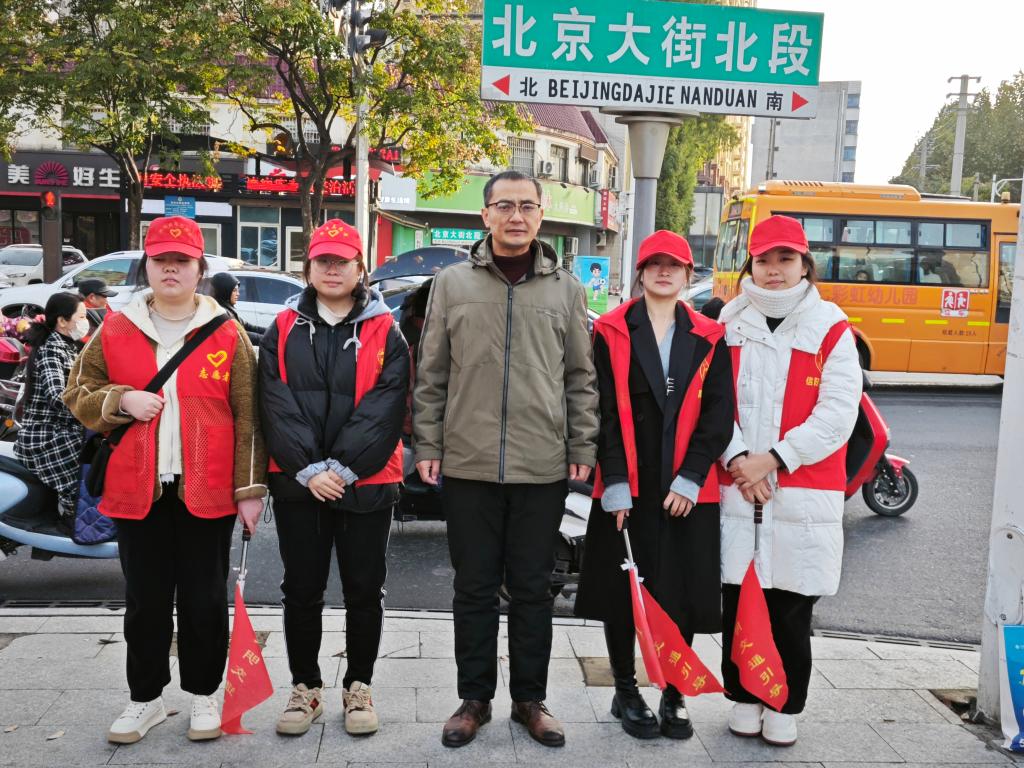 不管是晨光熹微,还是夜幕低垂,志愿者们都顶着寒风、冒着冬雨坚守在交通文明劝导的岗位上。“请走人行道,注意交通安全。”志愿者挥舞小旗,打着手势给行人和车辆指引正确的路线。“往前走,下个路口就到。要是还找不到,可以再问我们。”志愿者的热心解答换来了求助人开心的微笑。他们的身躯虽然在寒风中微微颤抖,但目光依然坚定;他们的手臂在冷雨中上下挥舞,充满着力量。他们的微笑在冬日里散发着温暖,如一朵朵暖心的红梅。