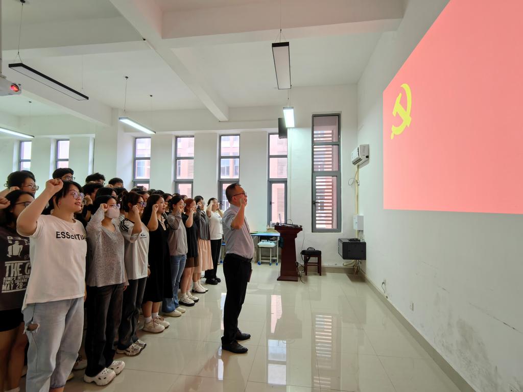 “我志愿加入中国共产党,拥护党的纲领,遵守党的章程……”全体毕业生党员在冀鹏的带领下,面向鲜红的党旗,重温入党誓词,再次向党作出庄严承诺,坚守入党初心,牢记使命担当。