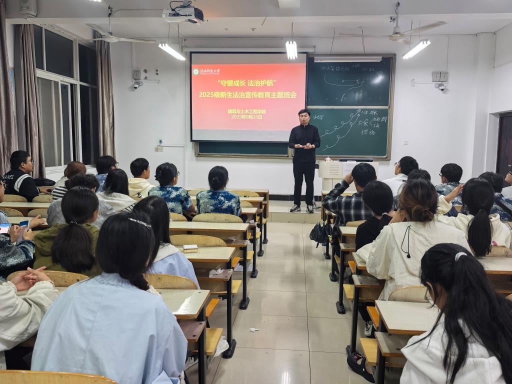为帮助新生扣好“法治第一粒扣子”,9月25日,betway西汉姆联官方网站在俊采楼405教室召开2025级新生法治宣传教育主题班会,2025级全体员工和班主任冯舒心参加活动。