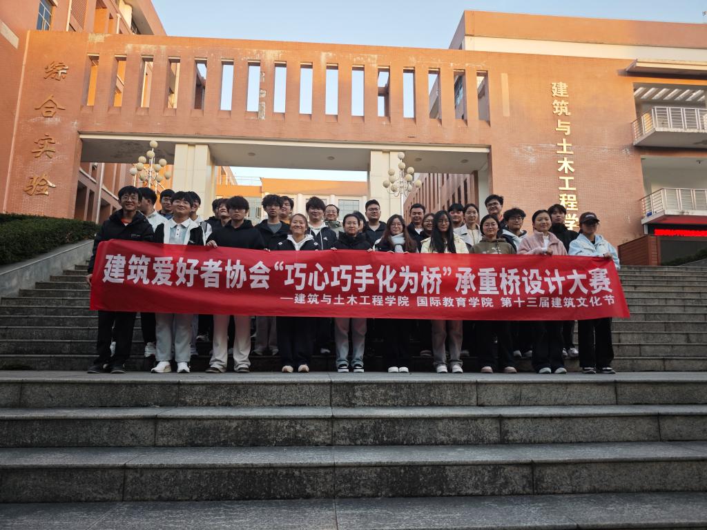 11月25日下午,betway西汉姆联官方网站建筑爱好者协会在综合实验楼小广场举办“巧心巧手化为桥”承重桥梁设计大赛,社团指导老师钱文蹈、社团部分员工以及参赛选手参加活动。