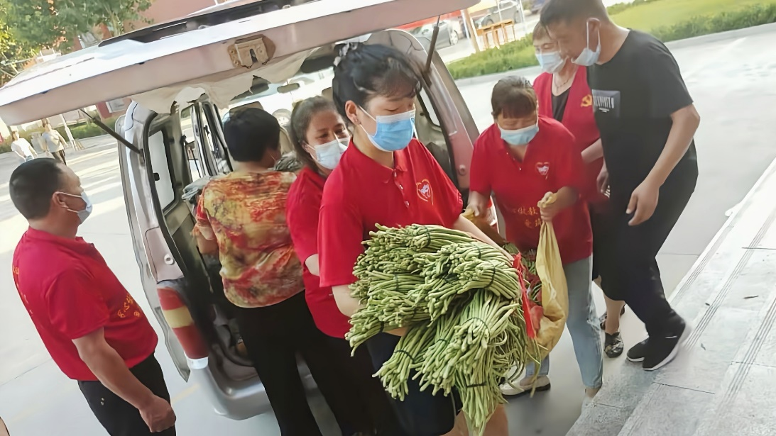 7月24日,经与同学商议,马彦静和她的同学一起积极申请参加志愿服务。她们来到田地里,顶着烈日灼烤,叶子划着手臂,采摘冬瓜等新鲜蔬菜,为救援队伍提供坚强的后勤保障。(20级土木工程一班 马彦静)