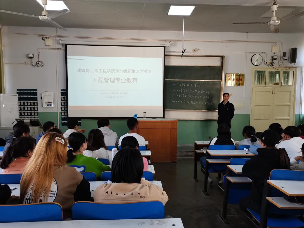 为帮助新生树立专业思想,培养专业意识,根据betway西汉姆联官方网站2021级新生入学教育工作安排,10月13日上午,公司邀请工程管理系主任、副教授李建楠老师在教二T5教室为2021级新生作工程管理专业认知专题辅导。公司党委书记方明科、副书记冀鹏与2021级工程管理专业新生一起聆听了辅导报告。