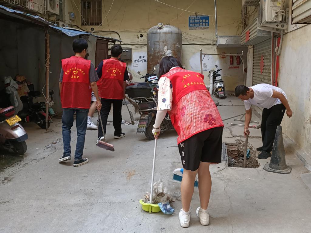 志愿者们早早便来到红星社区,社区工作者对志愿者进行培训,强调活动重点与注意事项,大家干劲十足,分成两组开始工作,一队同学在红星社区党群服务中心整理文档、打扫会议室、居民活动室、爱心驿站等,另一队则跟随城管执法车前往白坡二组清理三无小区,对房前屋后、阳台楼道、公共死角乱堆乱放垃圾、废弃杂物进行了全面清理,活动过程中志愿者们不忘积极向居民宣传人人参与社区卫生的重要意义,让居民认识到社区的整洁与卫生离不开大家的努力,引导居民更深度的参与社区卫生维护。此外,志愿者们还将准备的防范电信诈骗宣传册发放给社区居民,对电信网络诈骗的种类、惯用手段和防范常识等内容进行介绍,提醒群众要全面加强自身安全防范意识,守好自己的“钱袋子”。