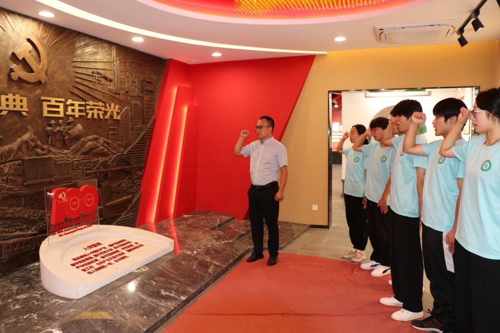 缅怀革命先烈,铸信仰之魂。“你们今天的幸福生活是由无数个革命先烈换来的,你们要向他们学习顽强拼搏、勇于奉献的革命精神,发奋读书,争做强国青年!”义务守护烈士墓五十余年的志愿军老兵王茂贵讲述了战争时期艰苦的生活和革命的不易,鼓励员工传承并弘扬红色基因。实践队员们先后参观了花山寨会议旧址、王大湾会议会址和邓颖超祖居,跨越时空界限,亲历那段峥嵘岁月,深刻感受到了革命先辈的不屈意志和斗争精神,大家面向党旗,重温入党誓词,用铿锵有力、掷地有声的誓言,表达了为党和人民的事业奋斗终身的理想和追求。