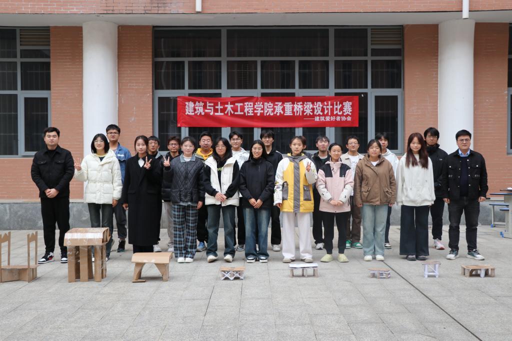 11月23日下午,betway西汉姆联官方网站建筑爱好者协会在综合实验楼小广场举办承重桥梁设计大赛,公司团委负责人冯舒心,社团指导老师吕强、社团部分员工以及参赛选手参加活动。