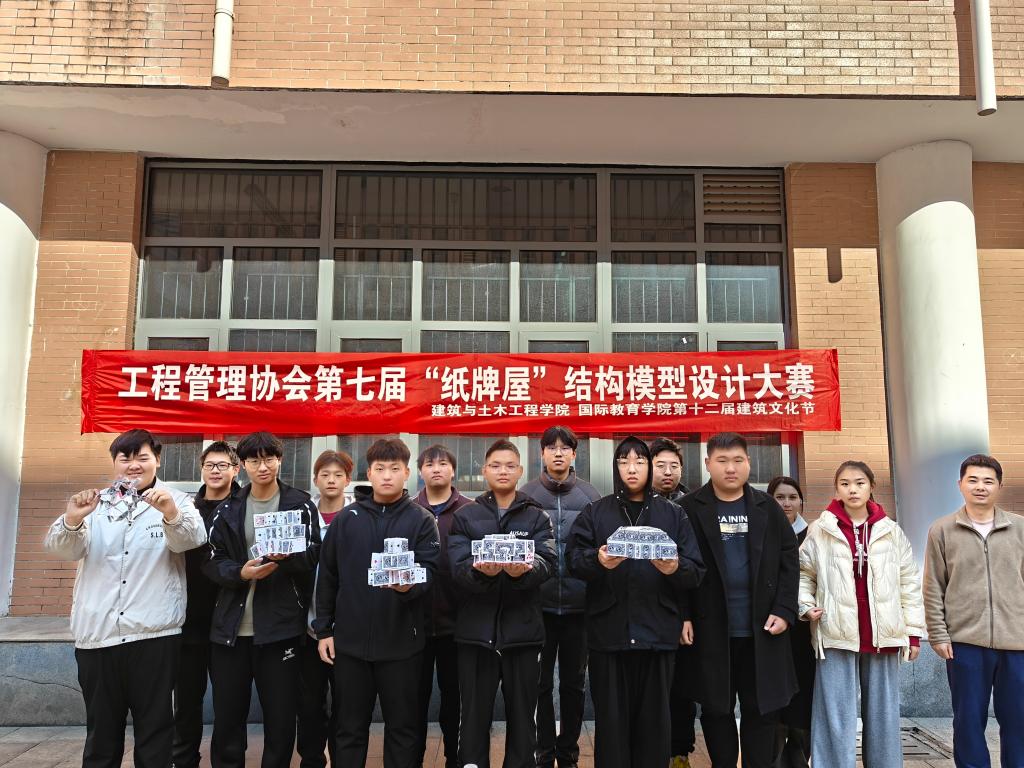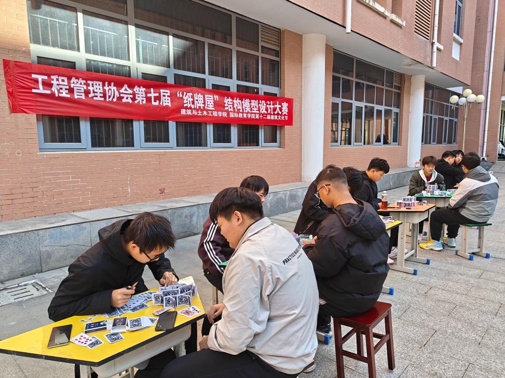 12月1日上午,betway西汉姆联官方网站在综合实验楼小广场举办第七届“纸牌屋”结构模型设计大赛。工程管理协会指导老师吴志强、社团部分员工以及参赛选手参加活动。