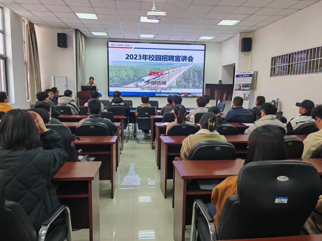 本次专场招聘会特别邀请了中铁十五局第三工程有限公司进校宣讲,吸引了四十余名毕业生到场参会。首先,宣讲专员对中铁十五局的发展历程、项目开展、招聘需求等情况进行了介绍。随后,该公司举行了简历筛选和一对一面试。经过双方相互选择,有12名毕业生有签约意向,最终现场签约7人。