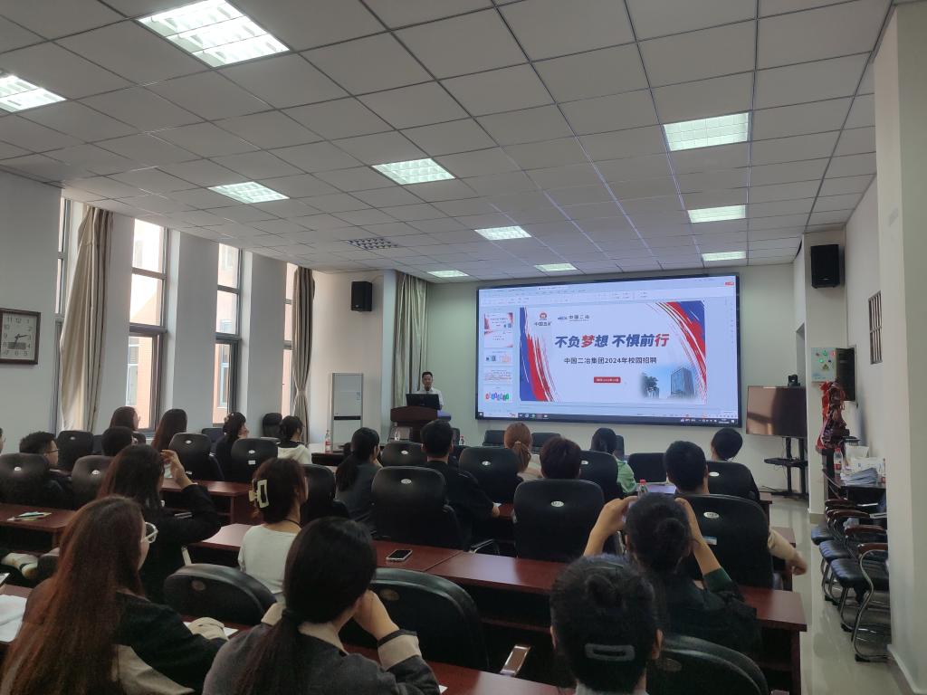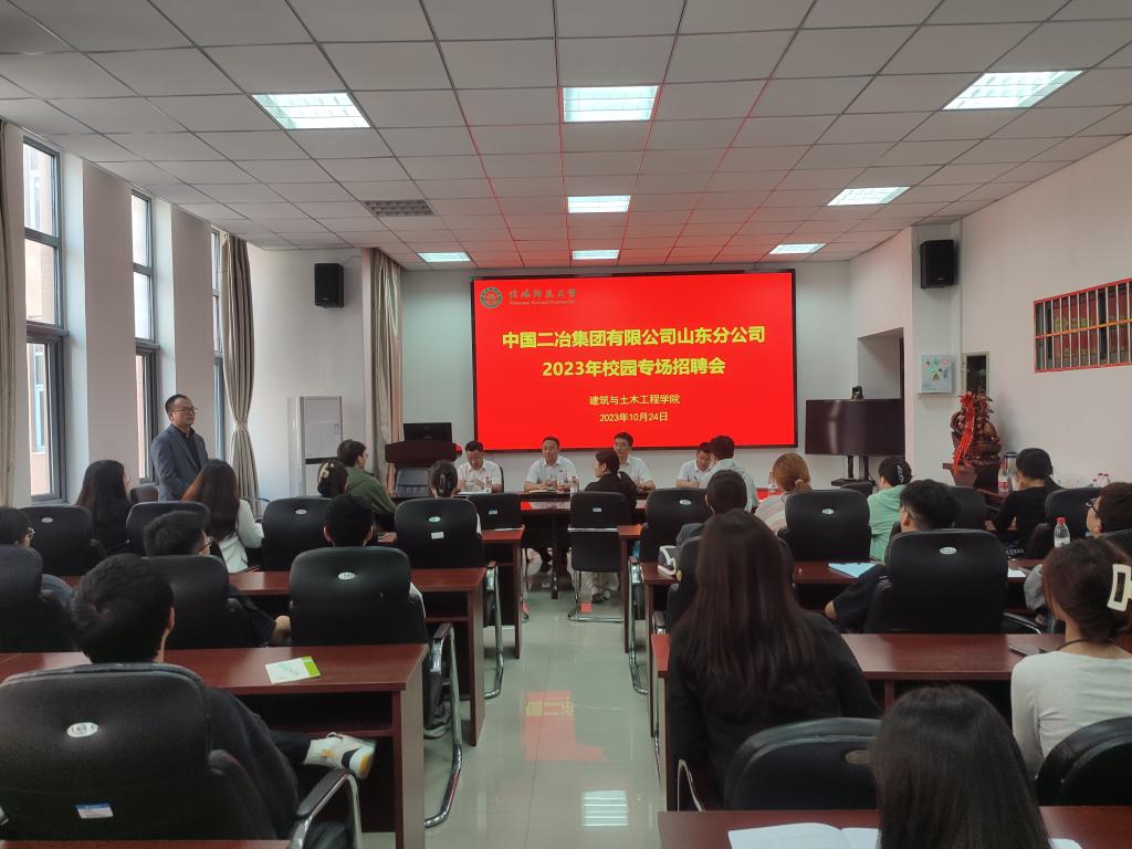 10月24日下午,中国二冶集团有限公司山东分公司在综合实验楼召开专场招聘会。betway西汉姆联官方网站党委副书记冀鹏、就业秘书邓林、2024届毕业生40余人参会。