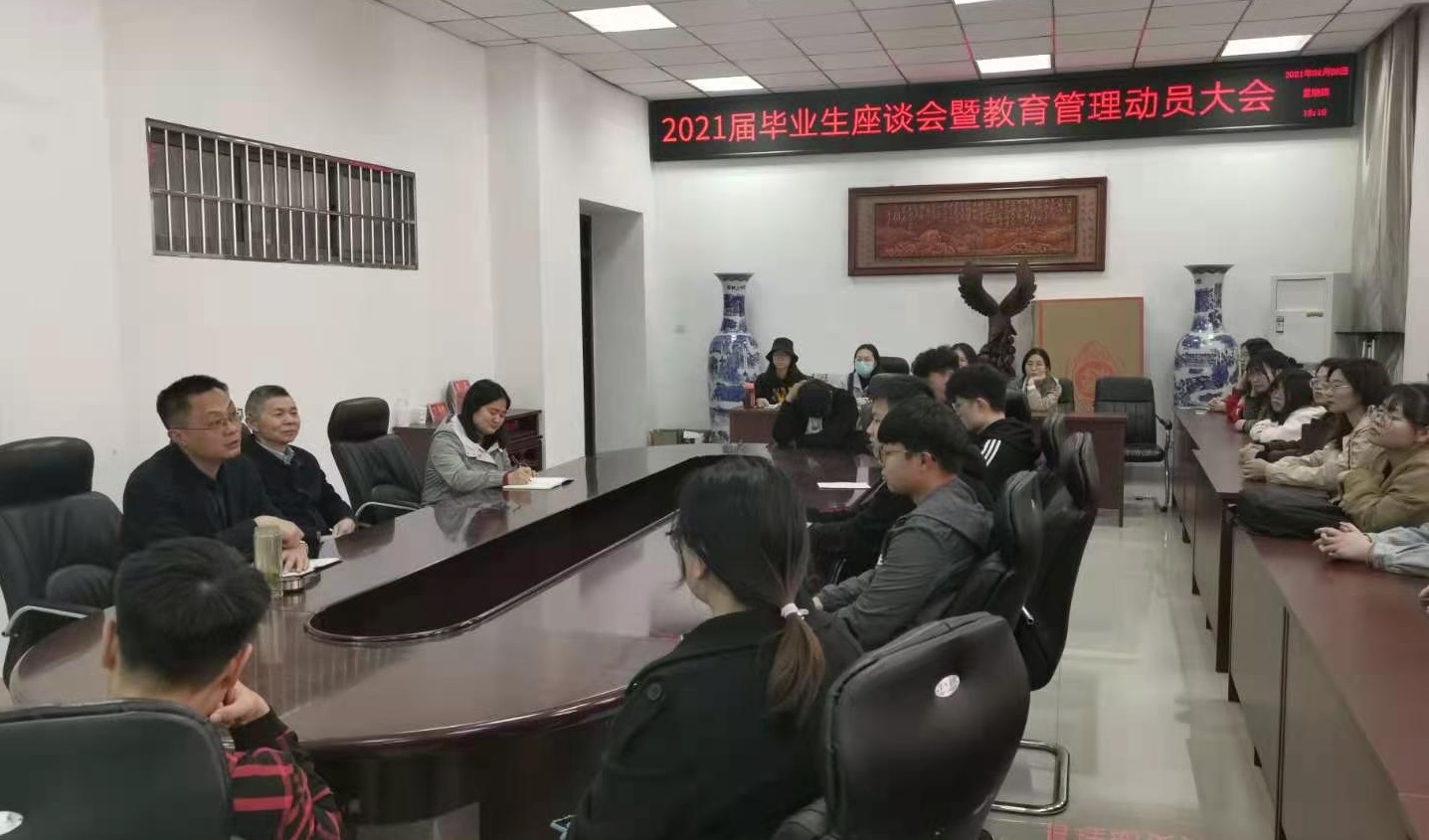 为进一步加强员工与公司的沟通联系,倾听毕业生心声,及时掌握毕业生的思想、学业、就业、生活等各方面的情况,针对性地解决毕业生在学习、生活中遇到的困难,公司于4月8日下午4点在综合实验楼206会议室召开2021届毕业生座谈会暨教育管理动员大会。公司党委书记黄学玉、副书记方明科、毕业班辅导员及毕业生代表40余名参加了会议。