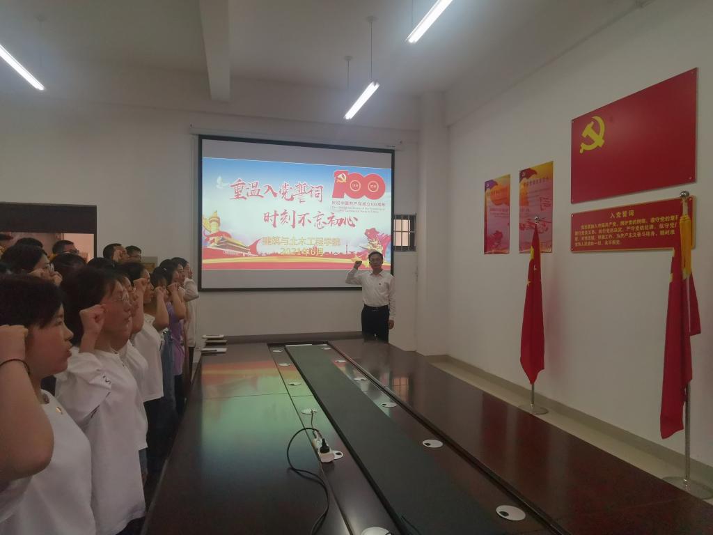 重温入党誓词,时刻不忘初心。在建筑与土木公司党员之家,面对鲜红的党旗,全院员工党员佩戴党员徽章,举起右手,紧握拳头,声音铿锵,再次庄严地向党宣誓。重温入党誓词使同学们进一步明确了自己的庄严承诺,坚定了理想信念,接受了心灵的洗礼,强化了一名共产党员在新时代里的责任感、使命感和紧迫感。