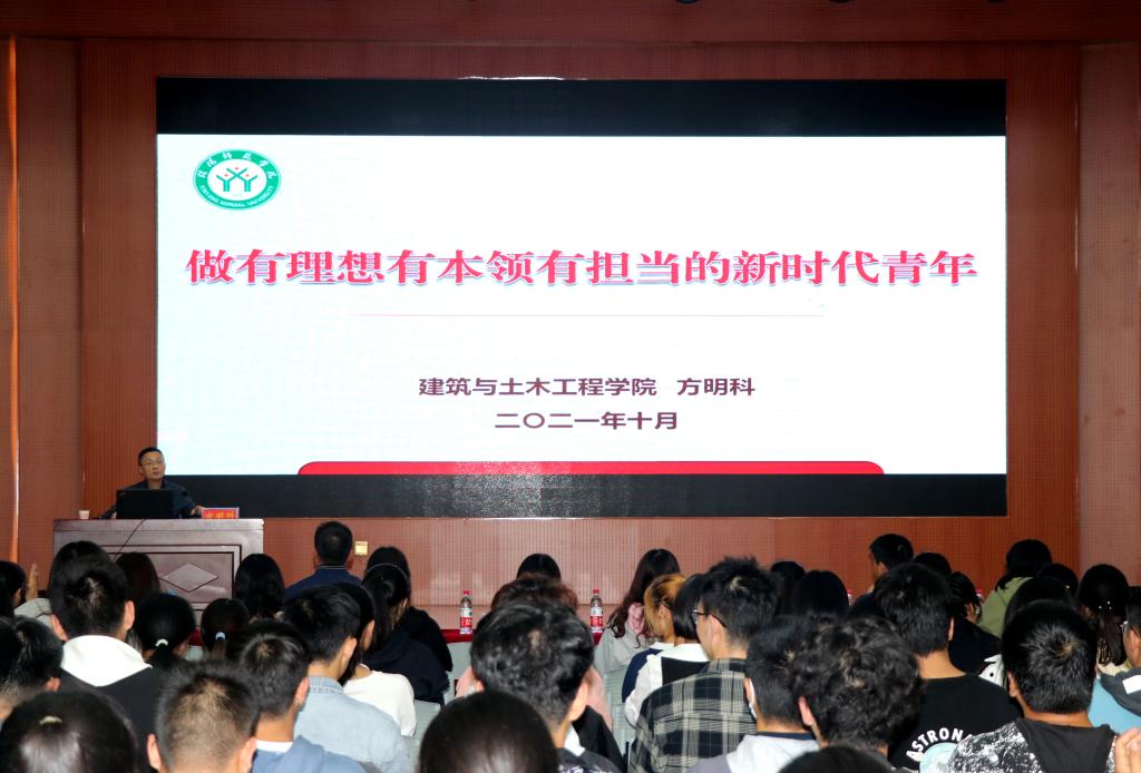 方明科做了题为《做有理想、有本领、有担当的新时代青年》的主题报告。他首先围绕校园环境、团队建设、科研创新、优秀员工等方面的内容向同学们介绍了公司、公司的基本情况。并鼓励新同学树立爱校护校意识,尽早融入大学的学习、生活。接着,他带领同学们深入学习了习近平总书记“七一”重要讲话精神,并提出学习七一讲话精神,就是要深入学习中国共产党的百年奋斗史,明白我们要走什么样的道路,了解我们目前的优势所在和存在的差距,增强四个自信,坚持两个维护,积极响应党的号召。要谨记总书记的殷切嘱托,争做有理想、有本领、有担当的新时代、新青年,为实现中华民族伟大复兴,建设富强民主的现代化社会主义国家贡献自己的青春热血的目标要求。最后,他以“有理想”、“有本领”、“有担当”为关键词,结合自身学习、工作经历,告诉同学们,要及早树立远大的理想目标,不断追求进步,努力实现自己的人生价值,把青春梦融入到中国梦里去;要修炼品性、坚定信念、勤学善思、知行合一,努力去学习、奋斗,笃行实干,争做先锋;要勇于担当,争做时代的弄潮儿,专业无好坏,职业无贵贱,在大学期间努力学习,全面发展,力争度过一个充实、美好、值得回忆的老员工活。