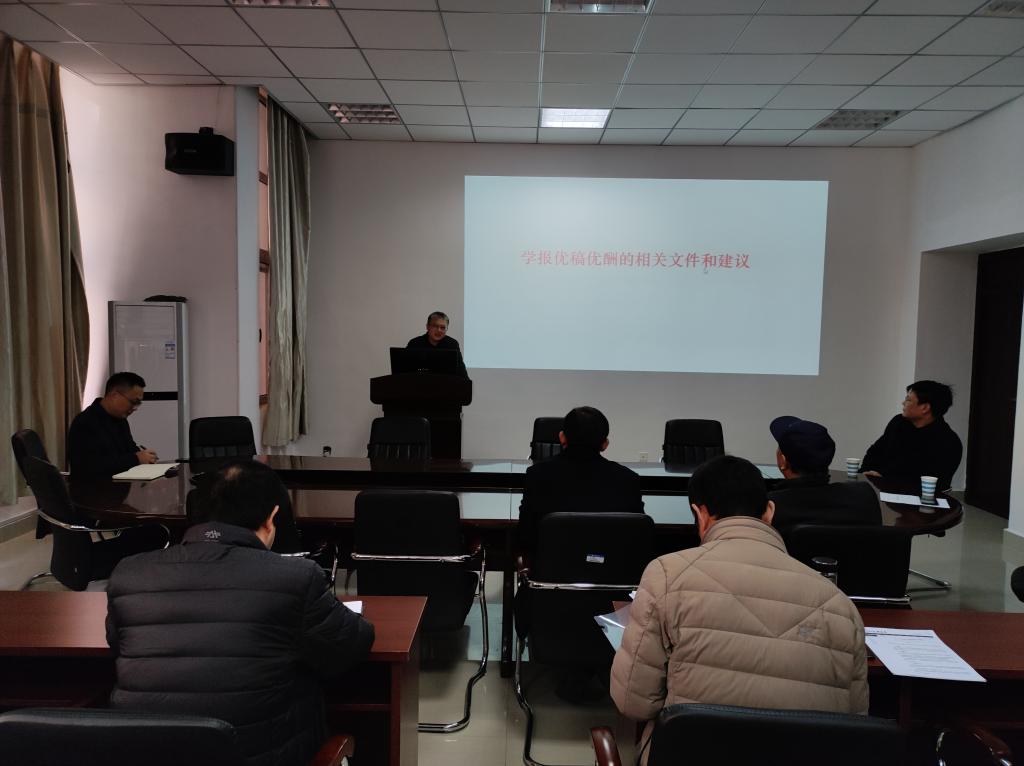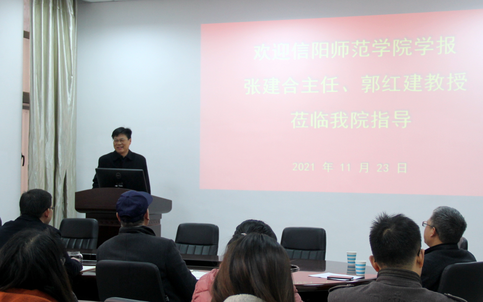 11月23日下午,应betway西汉姆联官方网站邀请,信阳师范公司学报编辑部主任张建合教授、副主任郭红建教授莅临betway西汉姆联官方网站,对信阳师范公司学报的办刊情况及相关政策进行了宣讲。公司领导班子全体成员和全体教师参加了此次报告会,会议由党委书记方明科主持。
