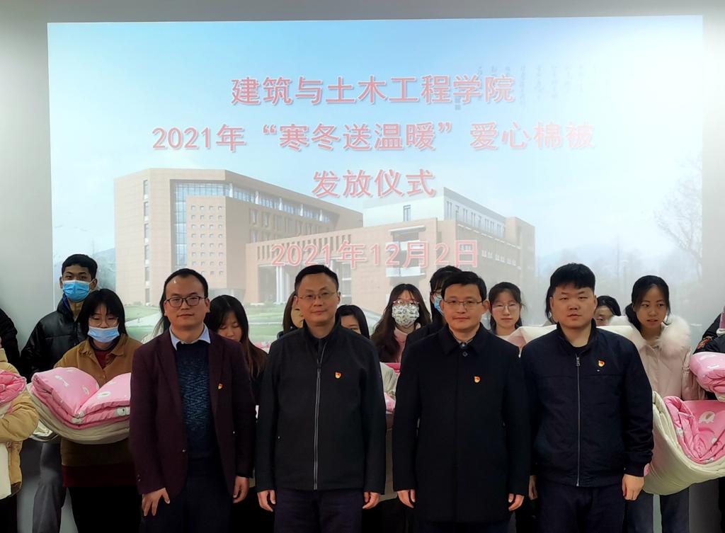 活动中,方明科宣读了《2021年“寒冬送温暖”爱心棉被资助员工名单》,方明科、周葆春为受资助员工现场发放了爱心棉被。