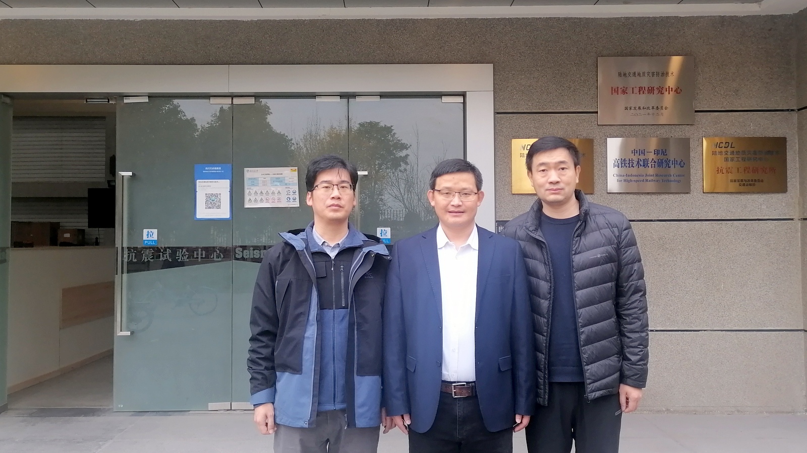 杨长卫引导周葆春一行参观了西南交通大学陆地交通地质灾害防治技术国家工程研究中心,双方就感兴趣的问题进行了深入探讨。