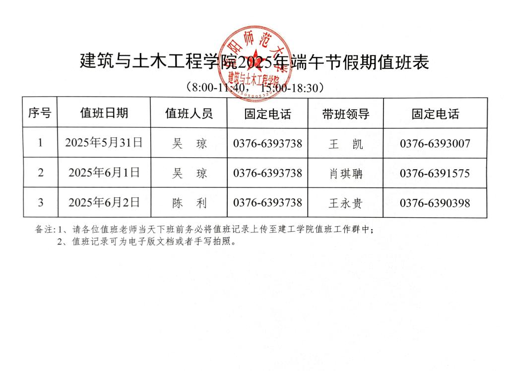 2025年端午节假期值班表